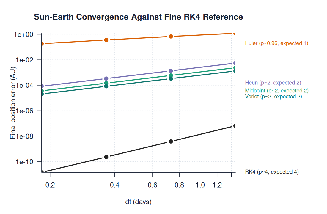 | convergence_rates.pngimages/analysis/convergence_rates.png | diagnostic | RK4 | Sun-Earth Convergence Against Fine RK4 Reference | ||