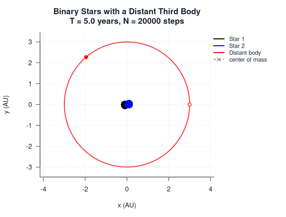 | binary_distant_third.htmlimages/three_body/general/binary_distant_third.html | trajectory_animation | 900 | Binary Stars with a Distant Third Body | T = 5.0 years, N = 20000 steps | ||
